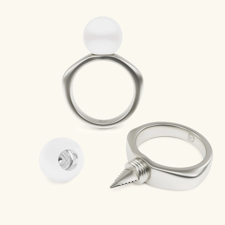Cute little ring with a sharp pokey thing inside. Ball unscrews easily and is discrete. Kinda feel like a badass wearing this.